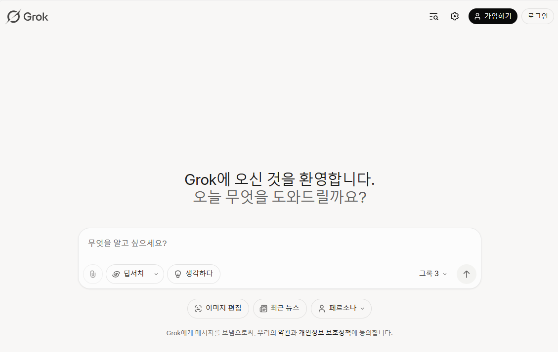 Grok 3를 시작하는 건 밥 먹기보다 쉬워요. X 계정 또는 이메일이나 구글계정으로도 가입이 됩니다!